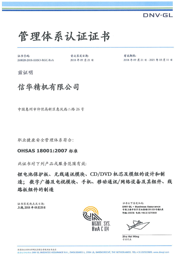 OHSAS18001 2007证书(2018)